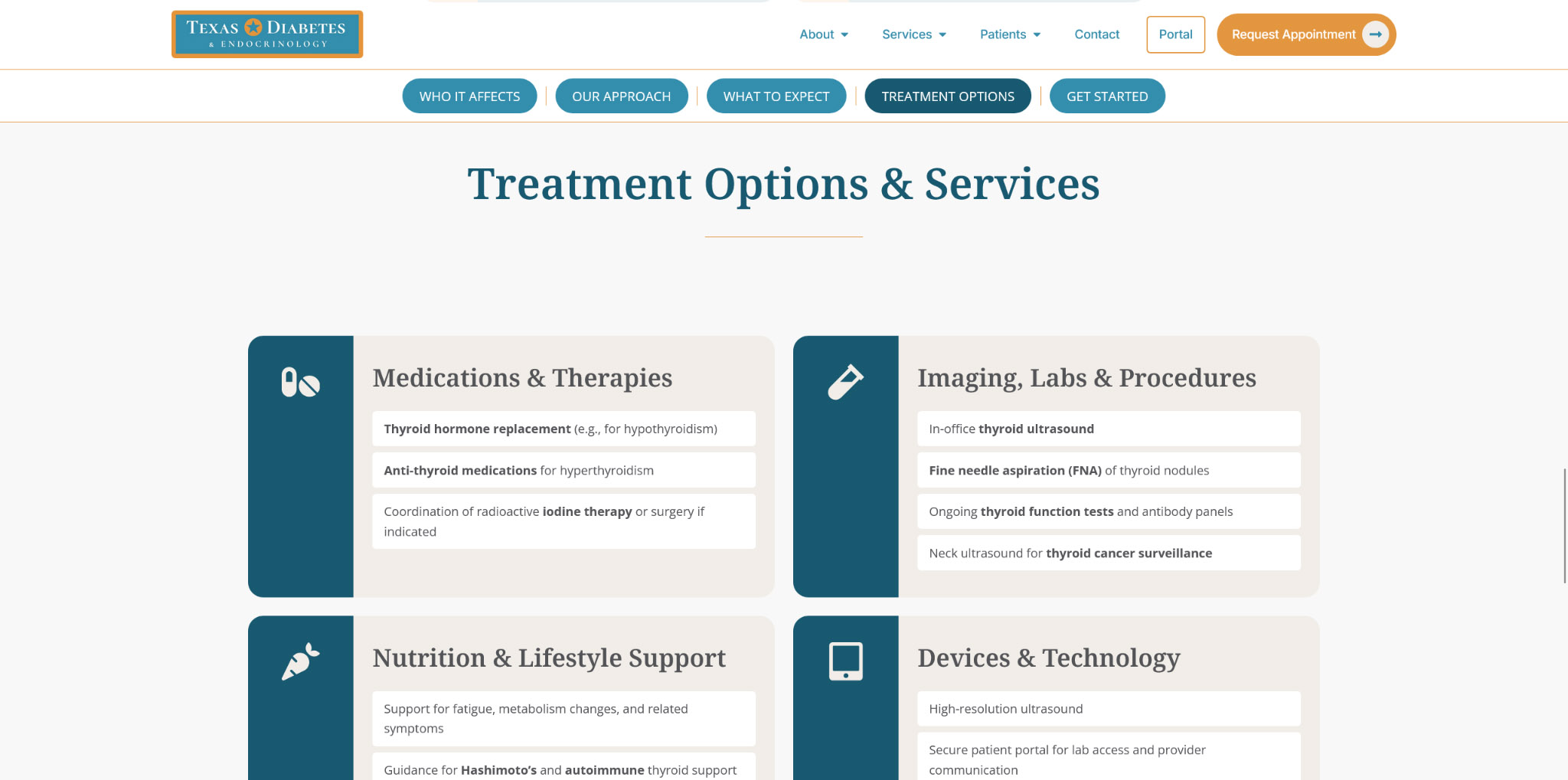 Texas Diabetes & Endocrinology was needing a much needed refresh of their website. Tasked with the design direction and content architecture, I was able to modernize both. The style is modern and confident with imagery that is comforting. For the content things were streamlined, especially in the case of Services which allowed for a consistent layout and easier content management on the backend.